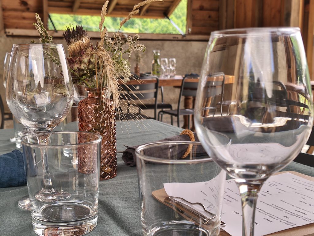 Les vendredis soir et le samedi midi d’été nous ouvrons les portes de l’ancien séchoir à tabac de la ferme et dressons le couvert pour partager le goût des plantes que nous cultivons.