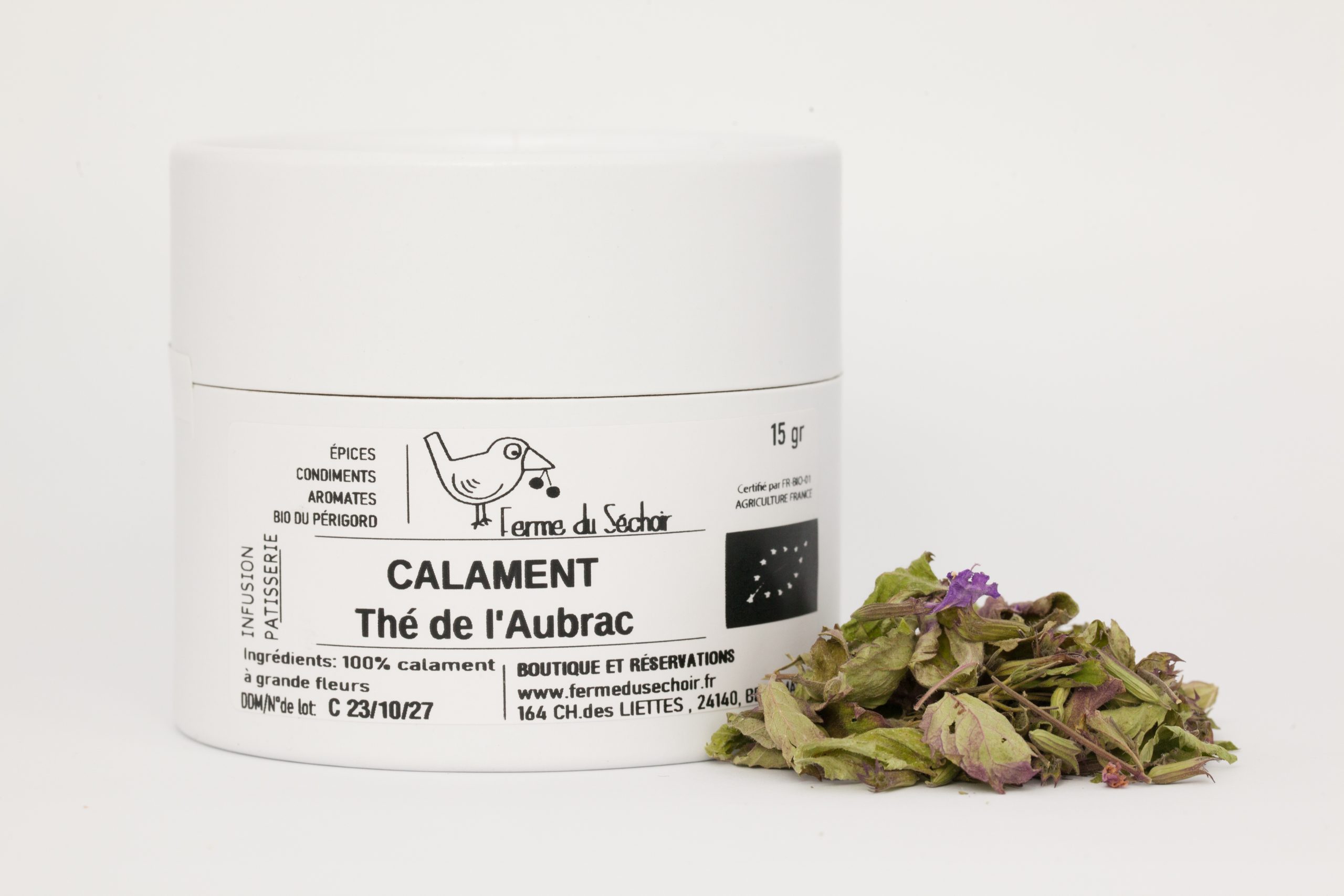 composition:100% calament bio cultivée à la ferme.