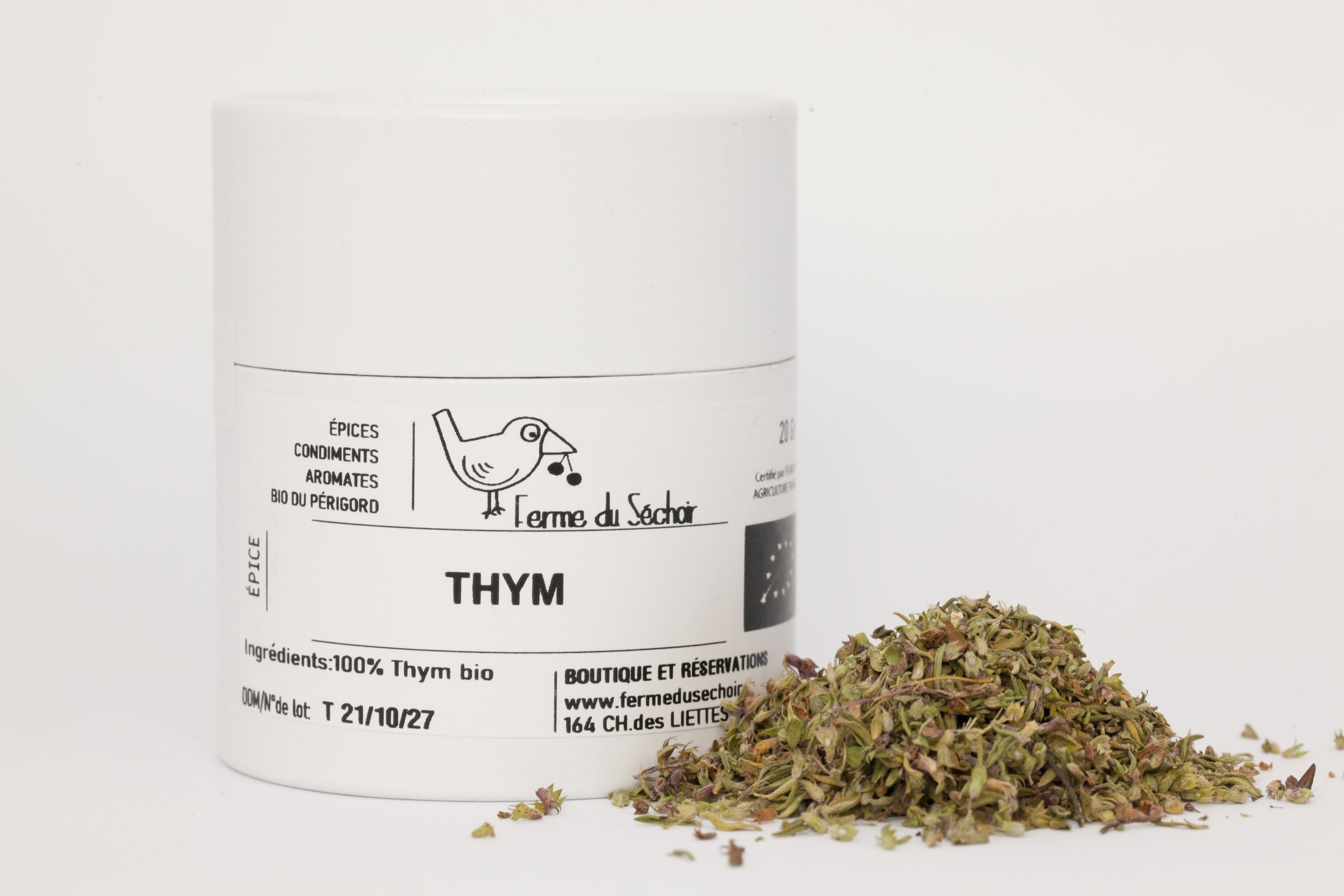 Notre thym est cultivé à la ferme en agriculture biologique.
