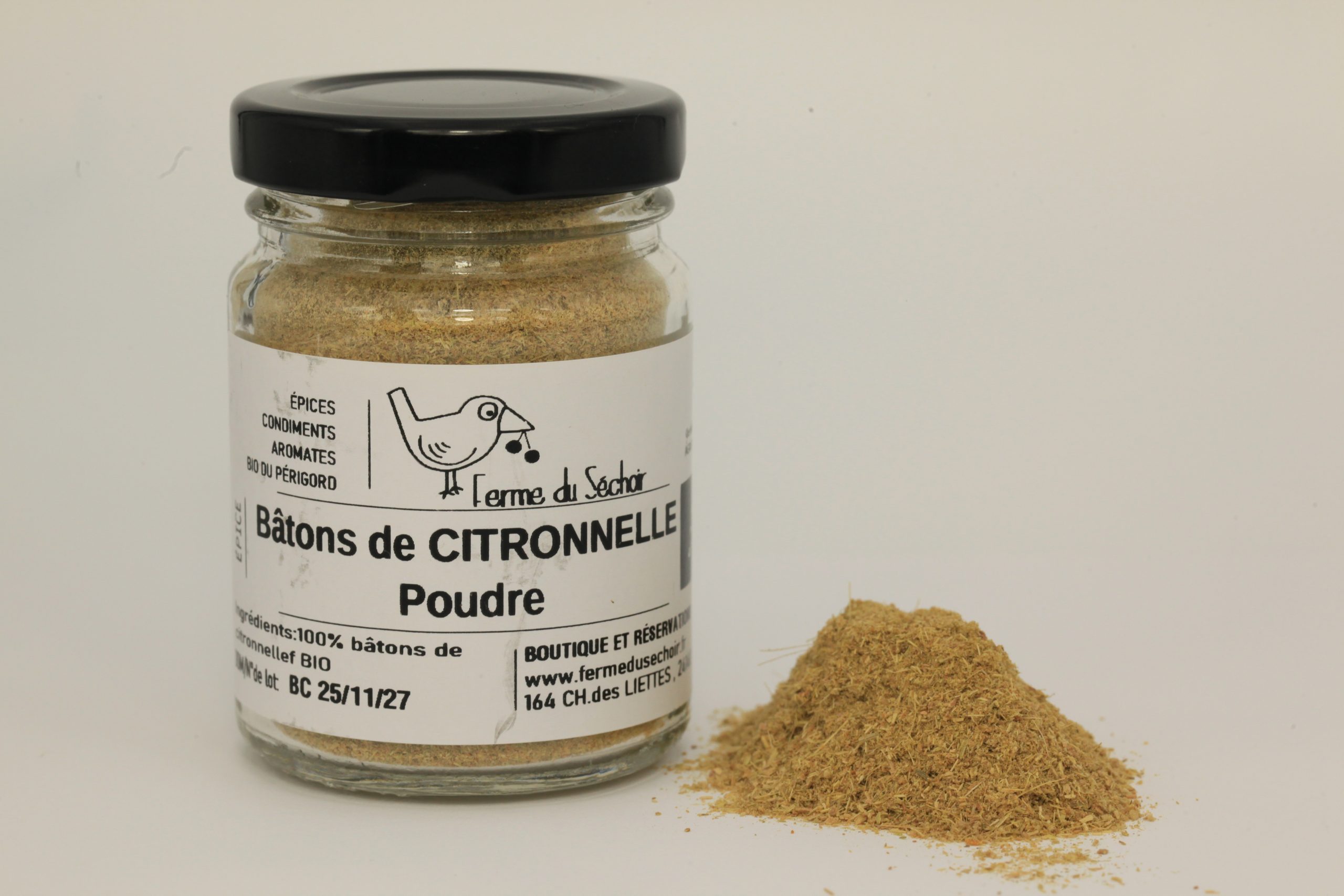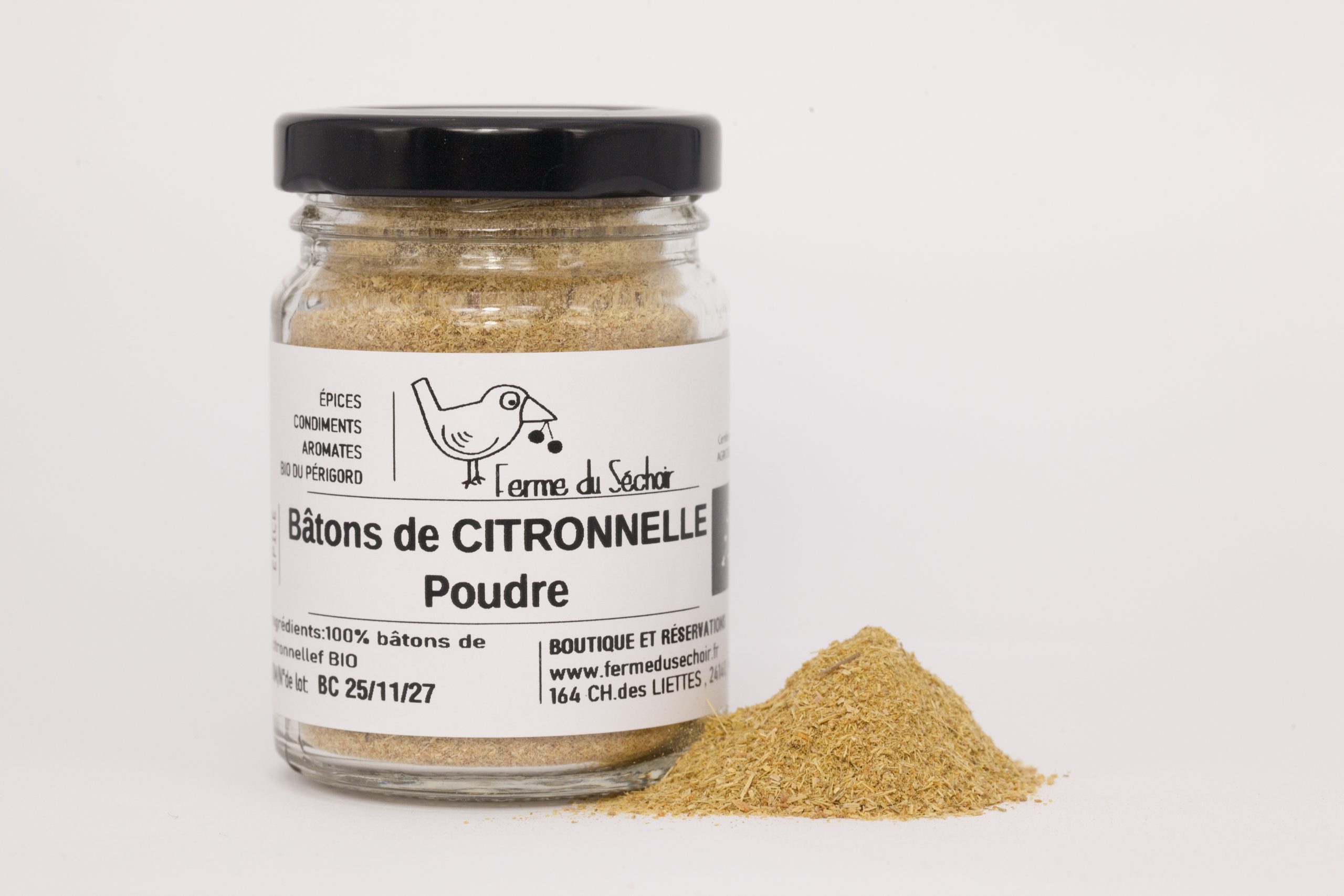 bâtonnet de citronnelle en poudre cultivée à la ferme en agriculture biologique